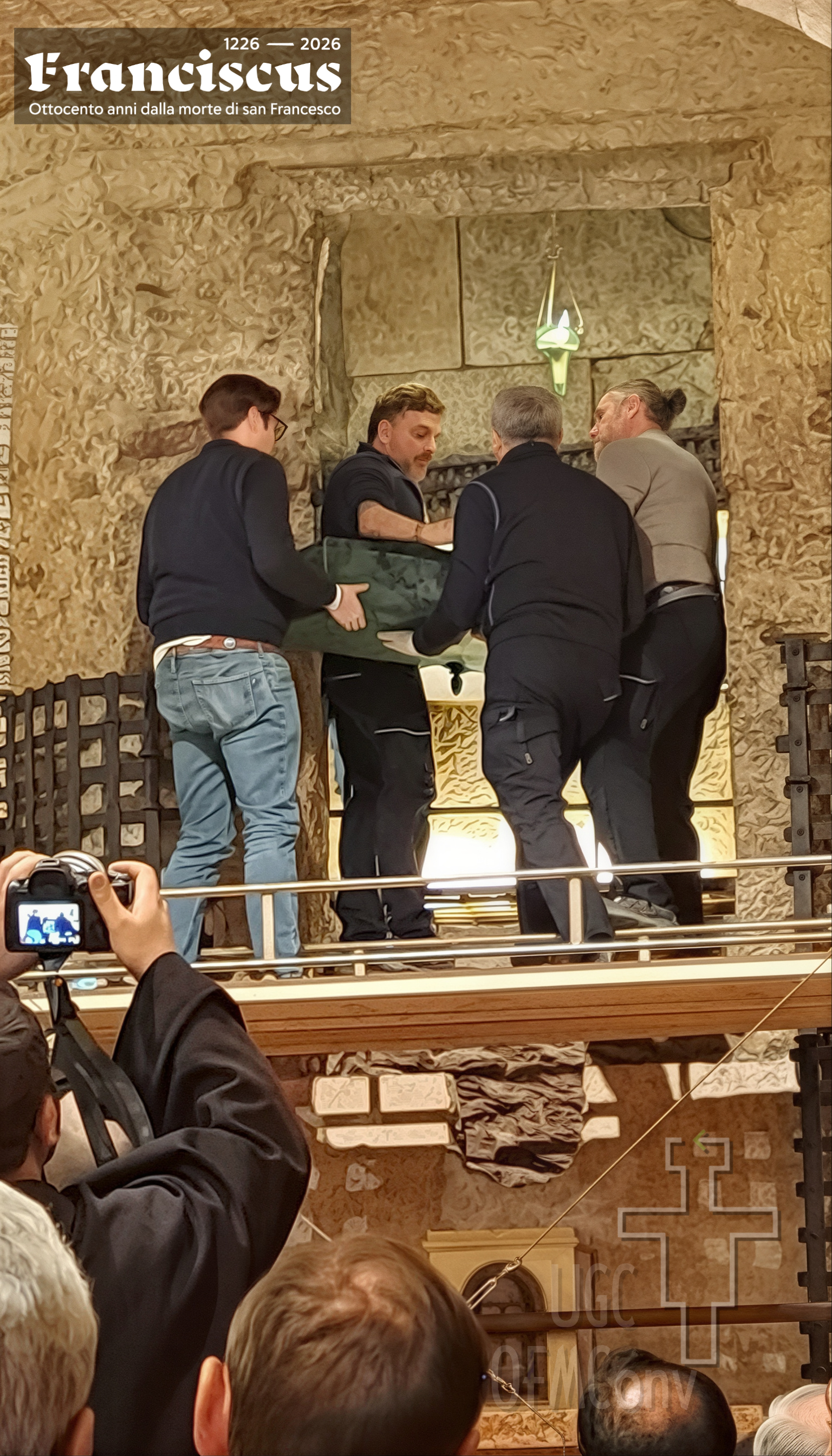 Con la chiusura del portone della Basilica alle 18.45 del giorno 22 marzo 2026, si è dato avvio alla conclusione della prima ostensione pubblica e prolungata delle spoglie mortali di san Francesco, evento straordinario legato all’ottavo centenario della sua morte e inserito nel cammino giubilare francescano. L’ostensione, aperta il 21 febbraio con la riapertura del sarcofago nella cripta alla presenza della comunità francescana e delle autorità ecclesiastiche, ha rappresentato un gesto eminentemente ecclesiale: non un’esposizione di carattere devozionale o estetico, ma la restituzione alla vista di una memoria viva, capace di interrogare la fede e la tradizione. In serata, la celebrazione del rito della reposizione ha segnato ufficialmente la fine del mese di venerazione nella chiesa inferiore della Basilica, al termine di una giornata che aveva visto, alle ore 17.00 nella chiesa superiore, la celebrazione della Santa Messa solenne presieduta dal Cardinale Matteo Maria ZUPPI, Arcivescovo di Bologna e Presidente della Conferenza Episcopale Italiana, trasmessa in diretta da Tv2000 (emittente televisiva cattolica italiana) e in streaming su Play2000 (piattaforma digitale). Durante questo mese, oltre 350mila pellegrini, provenienti dall’Italia e da numerosi Paesi del mondo, hanno raggiunto Assisi per sostare in preghiera davanti al corpo del Santo. Alle 21.30, il suono delle campane ha dato inizio al rito, presieduto dall’amministratore apostolico delle diocesi di Assisi - Nocera Umbra - Gualdo Tadino e di Foligno, Monsignor Domenico SORRENTINO, alla presenza dei soli frati del Sacro Convento.