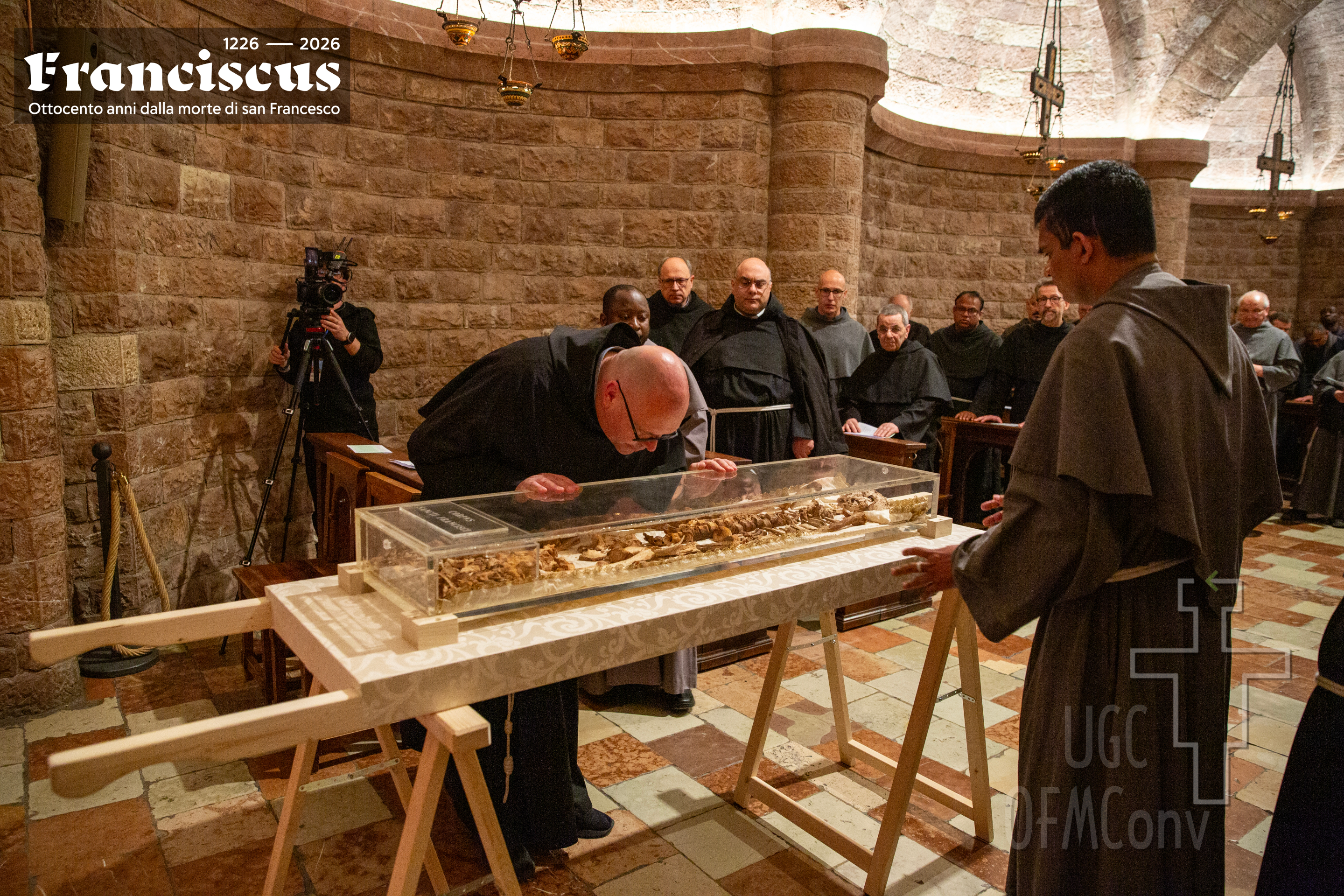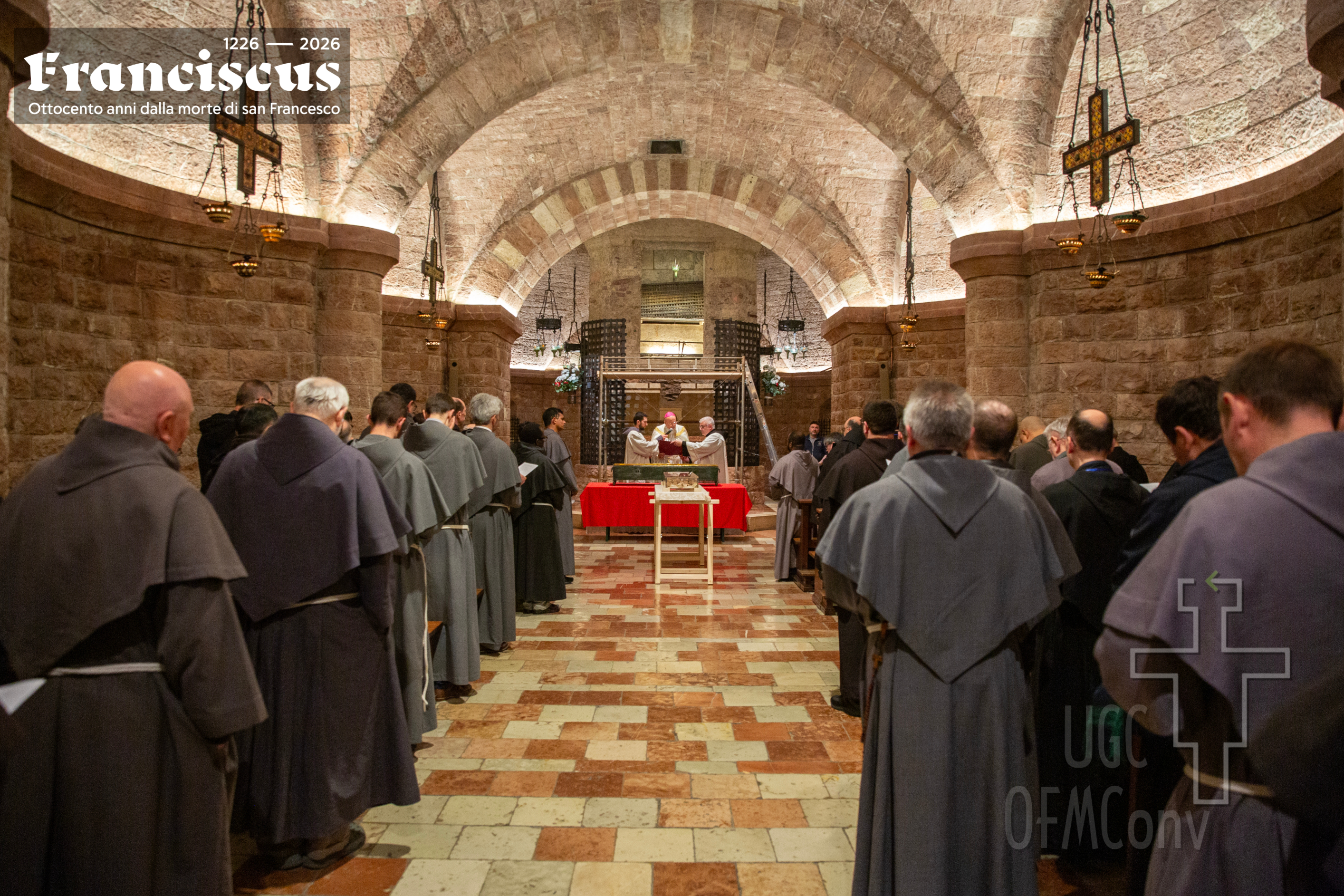 Con la chiusura del portone della Basilica alle 18.45 del giorno 22 marzo 2026, si è dato avvio alla conclusione della prima ostensione pubblica e prolungata delle spoglie mortali di san Francesco, evento straordinario legato all’ottavo centenario della sua morte e inserito nel cammino giubilare francescano. L’ostensione, aperta il 21 febbraio con la riapertura del sarcofago nella cripta alla presenza della comunità francescana e delle autorità ecclesiastiche, ha rappresentato un gesto eminentemente ecclesiale: non un’esposizione di carattere devozionale o estetico, ma la restituzione alla vista di una memoria viva, capace di interrogare la fede e la tradizione. In serata, la celebrazione del rito della reposizione ha segnato ufficialmente la fine del mese di venerazione nella chiesa inferiore della Basilica, al termine di una giornata che aveva visto, alle ore 17.00 nella chiesa superiore, la celebrazione della Santa Messa solenne presieduta dal Cardinale Matteo Maria ZUPPI, Arcivescovo di Bologna e Presidente della Conferenza Episcopale Italiana, trasmessa in diretta da Tv2000 (emittente televisiva cattolica italiana) e in streaming su Play2000 (piattaforma digitale). Durante questo mese, oltre 350mila pellegrini, provenienti dall’Italia e da numerosi Paesi del mondo, hanno raggiunto Assisi per sostare in preghiera davanti al corpo del Santo. Alle 21.30, il suono delle campane ha dato inizio al rito, presieduto dall’amministratore apostolico delle diocesi di Assisi - Nocera Umbra - Gualdo Tadino e di Foligno, Monsignor Domenico SORRENTINO, alla presenza dei soli frati del Sacro Convento.